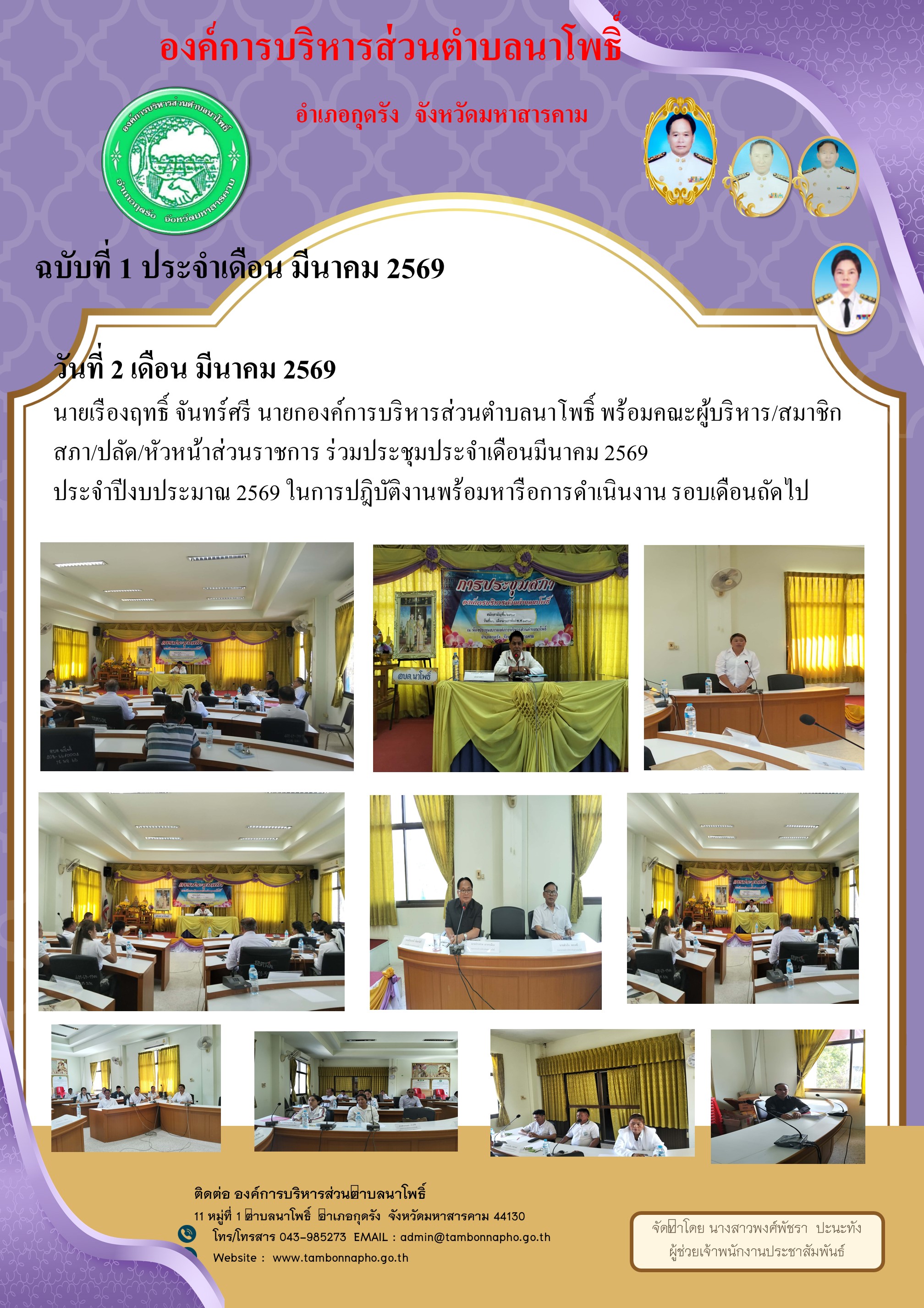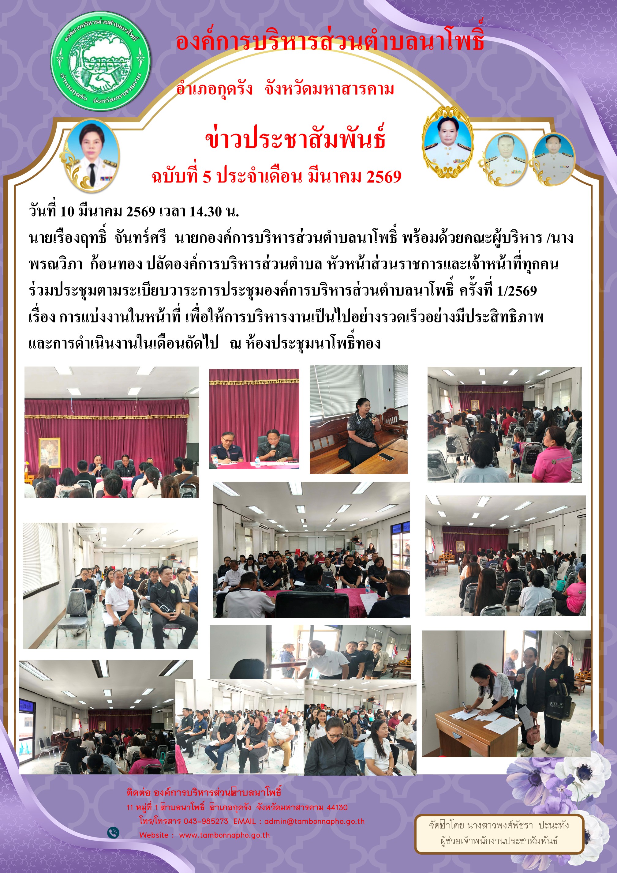 ประชุมองค์การบริหารส่วนตำบลนาโพธิ์ ครั้งที่ 1/2569 เรื่อง การแบ่งงานในหน้าที่ เพื่อให้การบริหารงานเป็นไปอย่างรวดเร็วอย่างมีประสิทธิภาพ |
