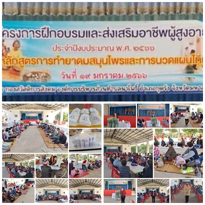 โครงการฝึกอบรมและส่งเสริมอาชีพผู้สูงอายุหลักสูตรการทำยาดมสมุนไพรและการนวดแผนไทย ประจำปีงบประมาณ พ.ศ 2566 |